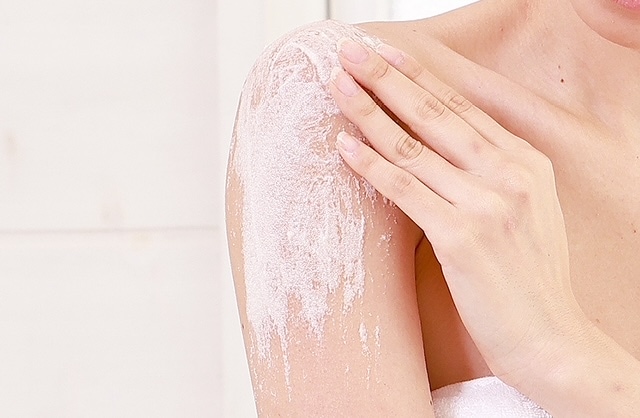 入浴時の身体に適量をとり、手のひらや指、スポンジでやさしく泡立ててマッサージし、洗い流してください。